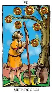 Siete de Oros en el Tarot: Significado, Reflexión y Éxito