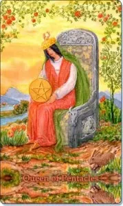 Esta reina no solo cuida de su entorno, sino que es la soberana de su propio dominio. Su presencia sugiere que es momento de actuar con pragmatismo, utilizando la organización y la paciencia para alcanzar metas a largo plazo. Es una carta que invita a la calma y a la confianza en las propias capacidades para manifestar resultados tangibles.